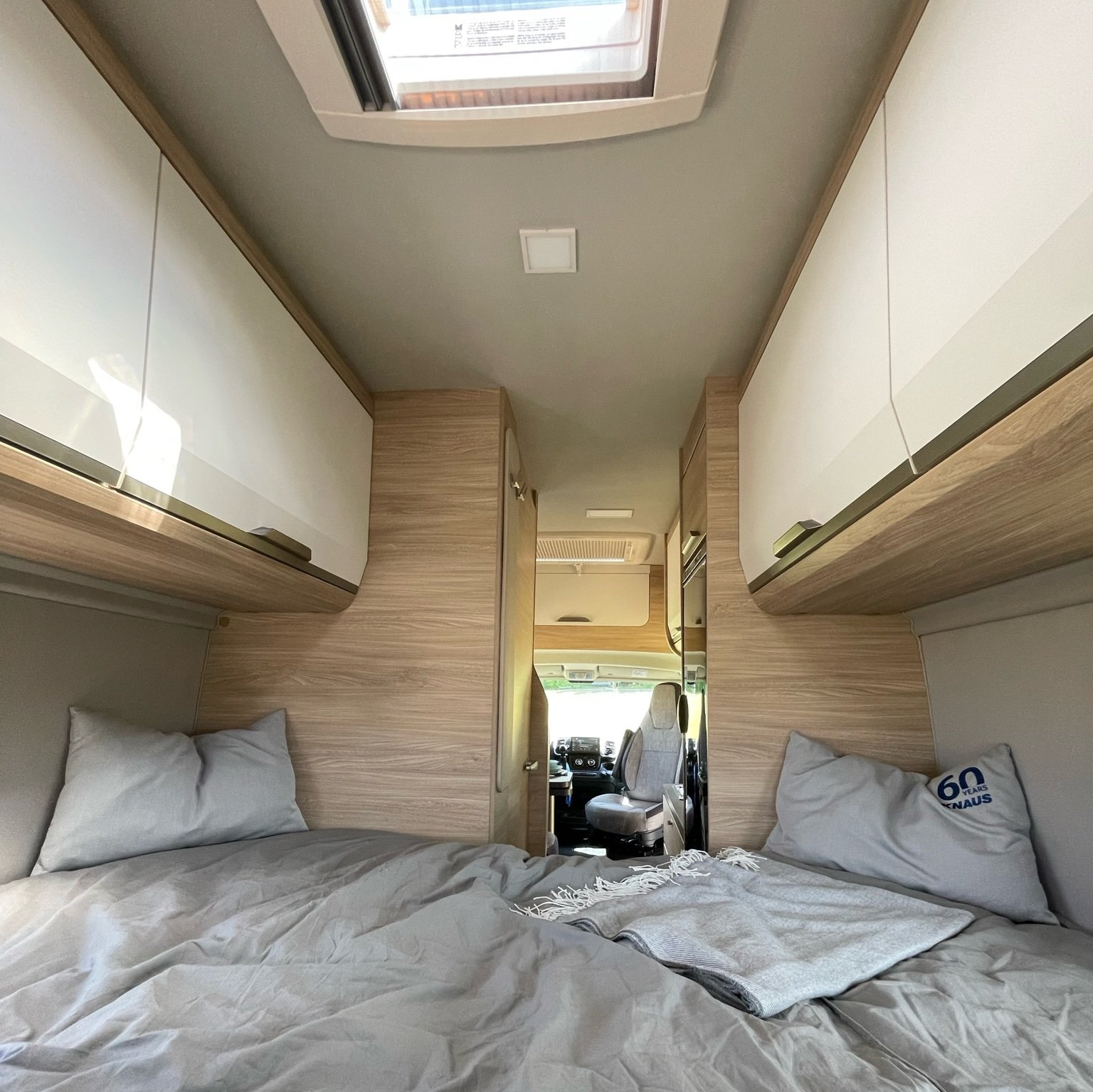 Durch die Erweiterung mit einem Zusatzbett im Fahrerhaus ist es problemlos möglich, dass ihr eurer Kind mit auf eure Reise nehmen könnt.